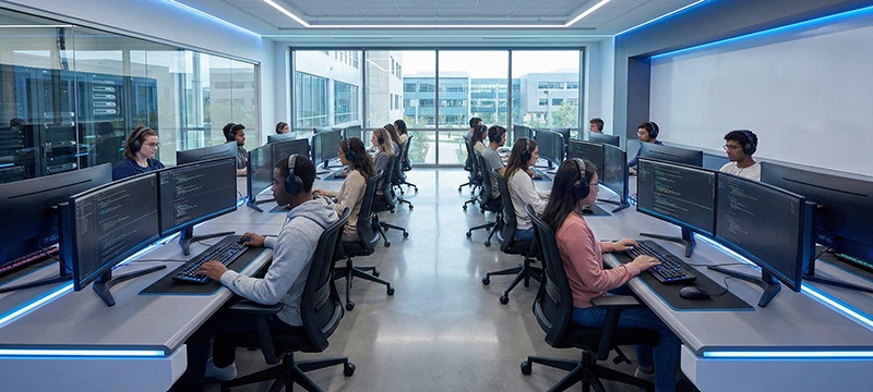 Home to high-performance computing clusters, AI research workstations, and 24/7 accessible computer labs. The heartbeat of our Computer Science and Data Science programs.